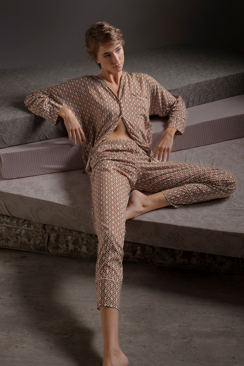 PRE-ORDER | Pijama pantalón elaborada en viscosa con estampado corbatero, camisa manga larga, con cuello, perilla de botones y bolsillo de parche en delantero, pantalón silueta carrot. Color estampado, Ref. 2532061