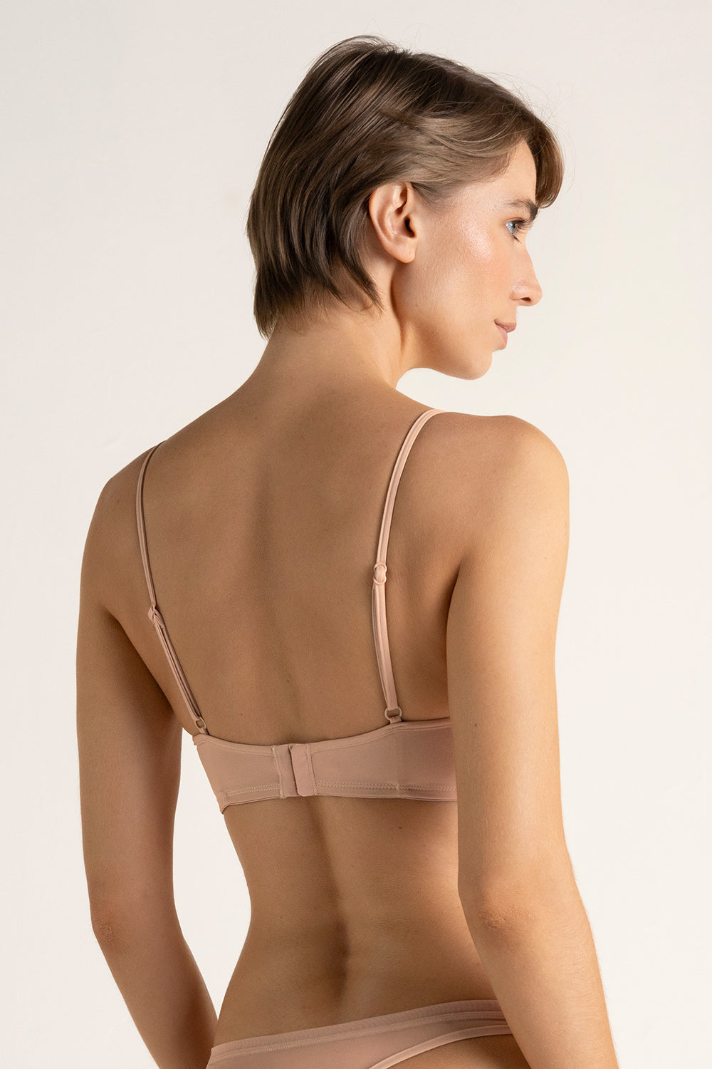PRE-ORDER | Brasier clásico con aro y sin copa de espuma, elaborado en microfibra y tul, copas dobles para mayor soporte, cargaderas ajustables y abrochadura en espalda. Color palo de rosa, Ref. 2407R61