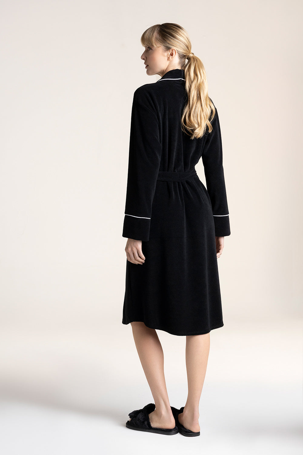 PRE-ORDER | Kimono largo elaborada en terry, vivos en contraste y lazo en la cintura para amarrar, silueta holgada. Color negro, Ref. 2547N61