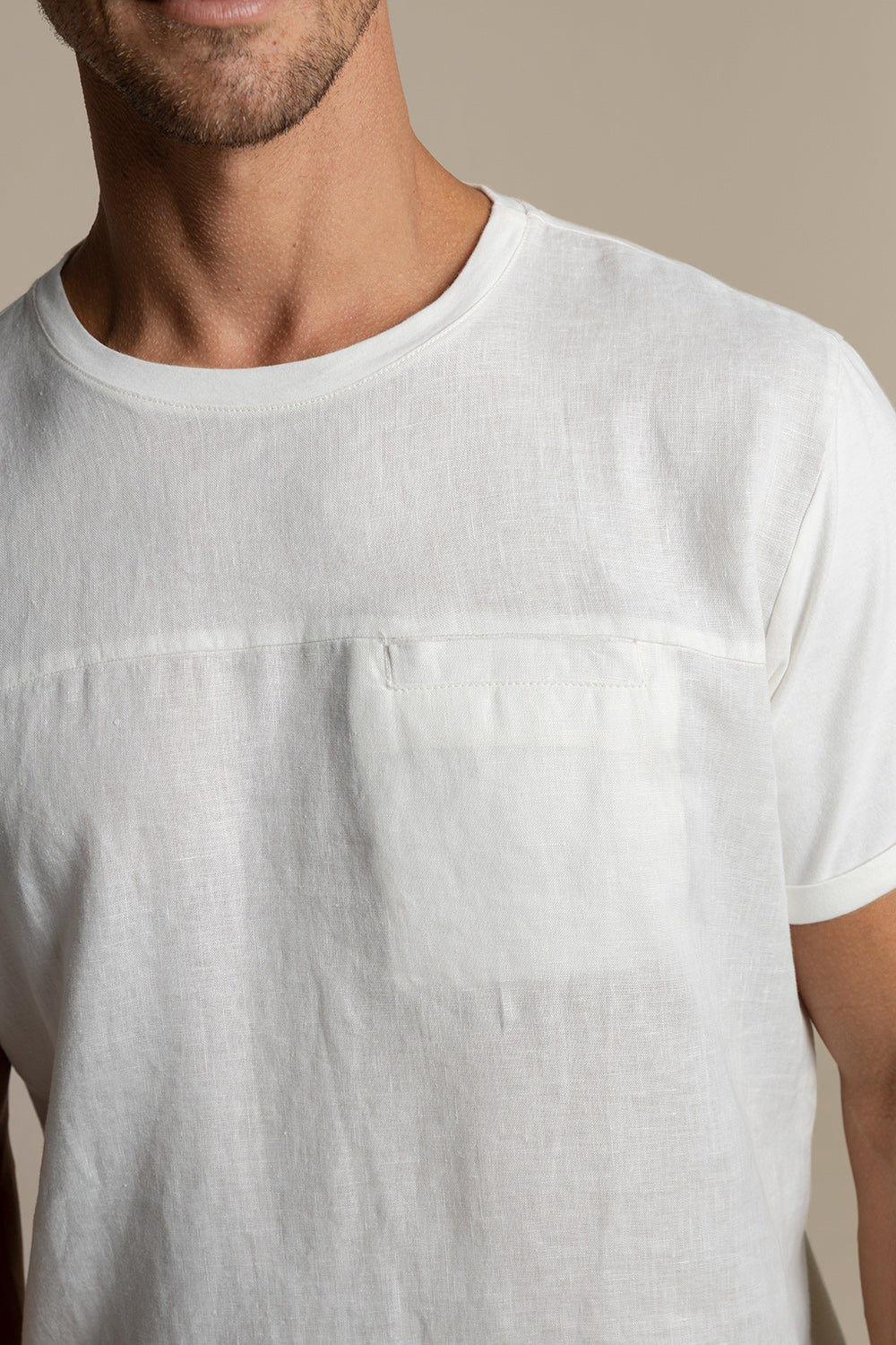 Camiseta Jamaica con frente en lino, espalda y mangas en algodón, manga corta y bolsillo de ribete en frente. Color marfil, Ref. SH06001