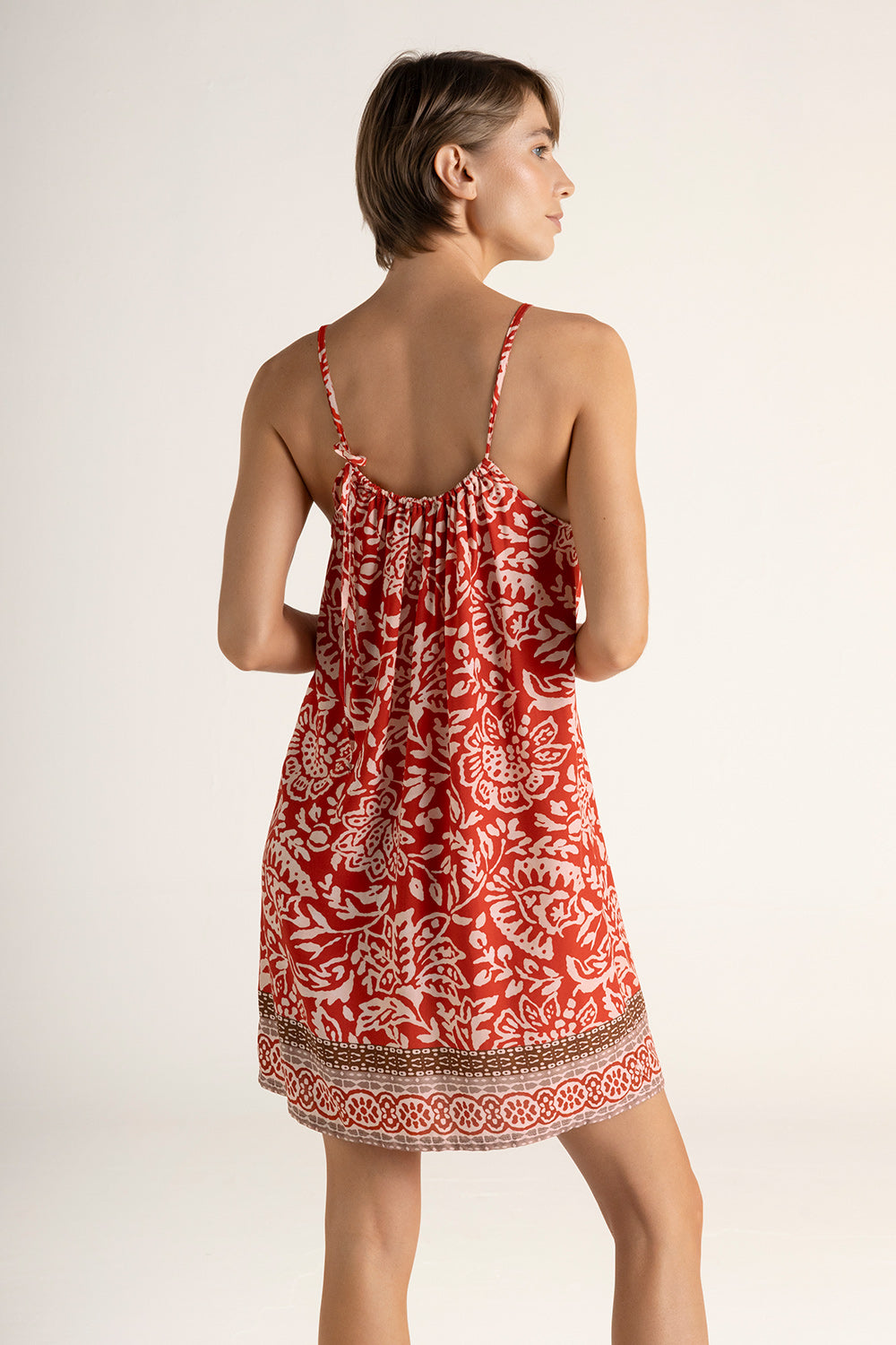 PRE-ORDER | Batola elaborada en viscosa con estampado cenefa, escote redondo ajustable con top interno para mayor soporte y comodidad, cargaderas ajustables que se anudan en la espalda. Color estampado, Ref. 2517061