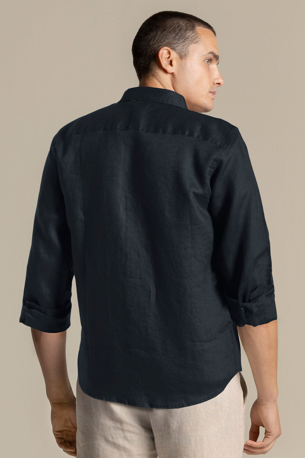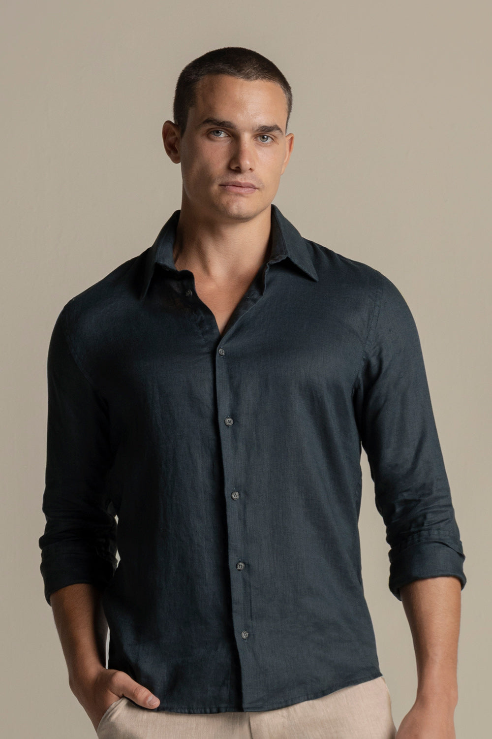 PRE-ORDER | Camisa Fiji en lino azul petróleo. Manga larga, slim fit y cuello clásico. Color azul, Ref. SH48A61